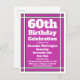 Geometric 60th Purple Birthday Invitation Postcard