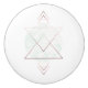 This artwork features triangles outlined in a metallic rose gold geometric design.