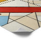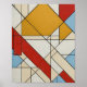 The image showcases a vibrant abstract artwork composed of geometric shapes and bold colors. A important yellow diamond shape dominates the upper portion of the composition, intersected by black lines and surrounded by a white background. A diagonal red stripe cuts across the center, adding a dynamic element to the design
