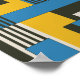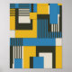 A striking geometric abstract design featuring overlapping rectangles and squares in bold yellow, vivid blue, deep black, and soft off-white. The layout combines solid blocks of color with striped sections, creating rhythm and movement across the composition. Strong contrasts and clean lines give the artwork a modern, dynamic look, making it perfect for contemporary decor, prints, or stylish backgrounds.