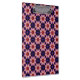 Geometric shapes form a repeating floral pattern with a vibrant color palette of red, purple, and pink. The symmetrical design creates a hypnotic and visually engaging effect.