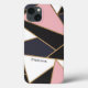 This abstract geometric design features gold diagonal lines separating triangle-shaped blocks in black, white and pink. For iPhone 13, Samsung Galaxy S6 to S10, and Google Pixel - pls choose your device. To change the name, color, or size of text press "Edit Design" then "Edit Text".