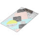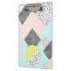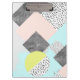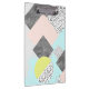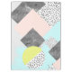 This abstract design features a collage of geometric shapes, pastel colors, polka dots and concrete.