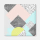 This abstract design features a collage of geometric shapes, pastel colors, polka dots and concrete.