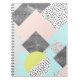 This abstract design features a collage of geometric shapes, pastel colors, polka dots and concrete.