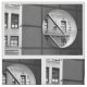 Stylish geometric fabric features a brick repeat of an architectural black and white photograph. The large open circle cut into the foreground concrete wall always stopped me. With just the right angle of view through the circular window, the zigzag of the fire escape stairs of the next building became visible. A collection of mesmerizing geometry was contained within and surrounding the circle: lines, angles, squares, rectangles, and triangles.