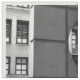 Sunlight illuminates the background building, the square panes of its rectangular windows a mix of light and dark reflections. The shadowed foreground wall draws your eye through to the details.