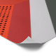 This design features a series of bold, overlapping chevron shapes pointing to the right. The color palette ranges from vibrant orange and red tones on the left to more muted gray and black shades on the right. Small dotted patterns are incorporated within the shapes, adding texture and depth. The geometric precision of the lines and angles creates a dynamic and modern visual, perfect for abstract art enthusiasts or contemporary design projects.
