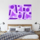 Geometric figures (triangle. circle, rectangle) in purple monochrome flat colors. Interior art (house, apartment, living room, room, shopping room, shop, restaurant, school, school, educational center, bookshop, office...).