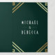Geometric Art Deco Emerald Gold QR Code Wedding Tri-Fold Invitation