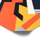 A bold abstract geometric design featuring sharp diagonal lines and layered shapes in black, deep navy, vibrant orange, golden yellow, and ivory white. The composition forms an energetic, lightning-like pattern that conveys movement, power, and modernity. The intersecting lines and angular structures create a sense of rhythm and visual tension, blending retro and contemporary aesthetics in a striking visual harmony.