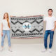 Geometric Aztec Black and Gray Monogram Pattern Throw Blanket
