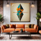 A vibrant and symmetrical composition where triangles and lines intertwine in harmony. Warm and cool tones create contrast and depth, evoking both technology and ancestry in a single emblem.
