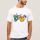 A t shirt for anyone who's into cycling and likes clean, modern design. This one is inspired by the artist Mondrian and in particular his geometric abstract work. There are illustrations of three classic bicycle shapes, each with solid blocks of color inside the frame and wheels. Colours include yellow, lilac, green and orange.