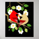 Red cardinal and beige cardinal bird with flowers on tree branches vector bird art