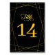 This geometric black and gold wedding table number card brings a touch of modern luxury to your reception decor. The deep black background with elegant gold accents creates a bold and sophisticated look. Perfect for black-tie or formal weddings, this stylish table number design helps guide your guests while enhancing your elegant wedding theme.