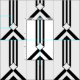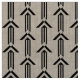 Stylish geometric fabric features three alternating black and transparent chevrons pointing up and ending at a diamond. Three black stripes extend from the top of the diamond to the base of the repeated design. The half drop design gives a feeling of arrows pointing upwards.