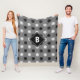 Geometric Black White Gray Floral Monogram Initial Fleece Blanket