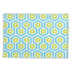 Modern geometric pattern of hexagons and crosses in blue, green, white.