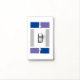 Geometric blue, grey and purple on a white background light switch wall plate.