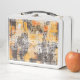 This is a standard metal lunchbox that appears to work just fine. We designed this box ourselves with an uploaded photo and custom text on the front and back. It looks absolutely beautiful except the front of the lunchbox is not centered like it shows in the photo. The print borders don't align with the inset flat part of the box where the preview photo online showed it perfectly centered in there. The back looks nice and centered though.