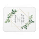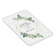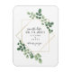 An elegant rustic wedding save the date magnet featuring a watercolor inspired botanical greenery design around a geometric frame with black text. Look for matching wedding invitations and other coordinating items at Jill's Paperie.