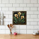 Geometric Calla Lily Art Deco Floral Gold Green Ceramic Tile