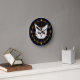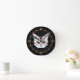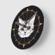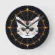 Geometric Cat Design Surrounded by Gold Stars Round Clock