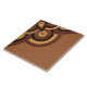 This geometric tile feature a corner design in black, rust, and gold on a terracotta background. This tile can be used in the kitchen backsplash, Fireplace or bathroom.