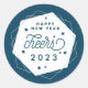 Finish your New Year's Eve party invitations, cards and more with these festive stickers. Design features "Happy New Year," "Cheers" and the year inside a multilayered hexagon element on a dark marine blue background accented with stars. Customize with the year. Designed to match our Geometric Cheer card and accessory collection.