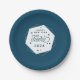 Add modern style to your New Year's Eve party with these festive paper plates. Design features "Happy New Year," "Cheers" and the year inside a multilayered hexagon element on a dark marine blue background accented with stars. Customize with the year. Designed to match our Geometric Cheer card and accessory collection.