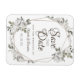 Vintage Cherish White Floral & Rose Gold Painted Roses and Flowers. A Vintage Classic and Elegant Look, and Plenty of Gray, Ivory White, Rose Gold, Dusty Pink, Pine Green, and Gray leaves and foliage. With Hand Painted Floral elements, Vintage Classic Script Fonts, and Elegant Rose Gold Glitter Foil Geometric Terrarium Gem Frame - Wedding Save the Date Magnets!