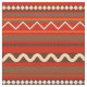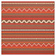 Geometric pattern features red, brown, and ivory in horizontal stripes and chevron lines. Some circle and diamond shapes.