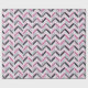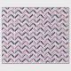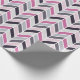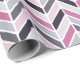 Geometric chevron pattern gift wrap in accents of purple, pink and grey.