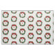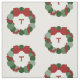 Stylish holiday fabric features a festive geometric Christmas wreath with a customizable monogram in the center. The wreath in this original digital design is made of green dots in three different shades and sizes. A strand of smaller red dots representing cranberries winds around the circular pattern. The wreath is topped with a red bow.