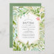 Plain white envelopes are included with paper invitations and will come to fit the invitation size you select. If you don’t need the envelopes, you may choose to not receive them by selecting the dropdown below "Envelopes" and choosing "None." If you’d like to have a design on your envelopes, you can browse all of these available envelopes to find the design that complements your Geometric Crystal Greenery Baptism Invitation.