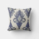 Geometric Damask IKAT Tribal Bohemian Pattern Navy Throw Pillow