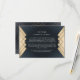 Geometric Deco Great Gatsby Enclosure Card - Amazing design with art deco lines in the Great Gatsby style. Very trendy, modern and edgy. Dark Blue Black Gold foil gold giving intricate detail to the front & back of card. Fancy and Formal weddings. Avant-Garde. Faux Gold.