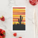 Abstract geometric desert sunset illustration with yellow, orange and red diagonal stripes and cactus decoration. Add your name/monogram or delete the text.