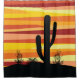 Abstract geometric desert sunset illustration with yellow, orange and red diagonal stripes and cactus decoration. Add your name/monogram or delete the text.