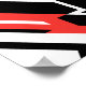 The design features a bold combination of black, red, and white colors arranged in sharp geometric patterns. Thick black and red stripes intersect and overlap on a clean white background, creating a strong sense of energy, movement, and modern style. The contrast between the colors gives the composition a powerful and sleek look, reflecting a technical and sporty aesthetic. The overall design feels structured, balanced, and visually striking.