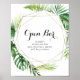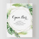 This geometric destination wedding open bar sign is perfect for a tropical wedding. The design features hand-painted watercolor green palm and banana leaves neatly arranged into beautiful bouquets, adorning a gold geometric frame.