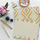 Colorful and stylish geometric diamond mod stripes in red, lime green, orange, dark grey, and white colors on a light moss khaki background. A modern and trendy graduation thank you note card / personal stationery.