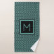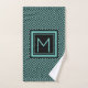 Geometric Diamond Pattern Black teal Monogram Bath Towel Set
