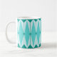 This Geometric Diamonds & Starbursts Mug has all of the kitschy charm of something that is kitschy and charming. The vintage inspired design features a mod, peacock blue background with light blue, elongated hexagons, layered with turquoise diamonds, and peacock blue starbursts. It’s a kaleidoscope of retro goodness! This 1950’s and 1960’s Palm Spring’s style design looks like it would be equally at home on a mid century modern motel sign or in the house of your favorite classic television family.