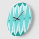 This Geometric Diamonds & Starbursts Acrylic Round Wall Clock has all of the kitschy charm of something that is kitschy and charming. The vintage inspired design features a mod, peacock blue background with light blue, elongated hexagons, layered with turquoise diamonds, and peacock blue starbursts. It’s a kaleidoscope of retro goodness! This 1950’s and 1960’s Palm Spring’s style design looks like it would be equally at home on a mid century modern motel sign or in the house of your favorite classic television family.