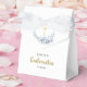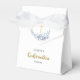 Simplistic blue eucalyptus leaves in a gold geometric frame Baptism or Confirmation favor box customizable to your event specifics.