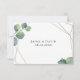 Trendy watercolor silver dollar eucalyptus leaves with golden geometric frame accents, wedding RSVP cards. Personalize text, customize font style, color, and size.