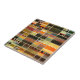 A modern kitchen or bathroom ceramic tile featuring a geometric checkered mosaic pattern in vibrant colors. Inspired by leaded glass or stained glass.