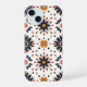 This artwork features a symmetrical pattern of stylized floral motifs, intricately arranged in a geometric layout. The design is dominated by bold shapes and sharp angles, with a color palette of deep navy, vibrant orange, and rich red set against a clean white background. The repetition of the floral elements and the precise, orderly arrangement create a sense of harmony and balance, while the contrasting colors add vibrancy and energy to the composition. The overall effect is both modern and timeless, combining elements of traditional floral designs with contemporary geometric precision.